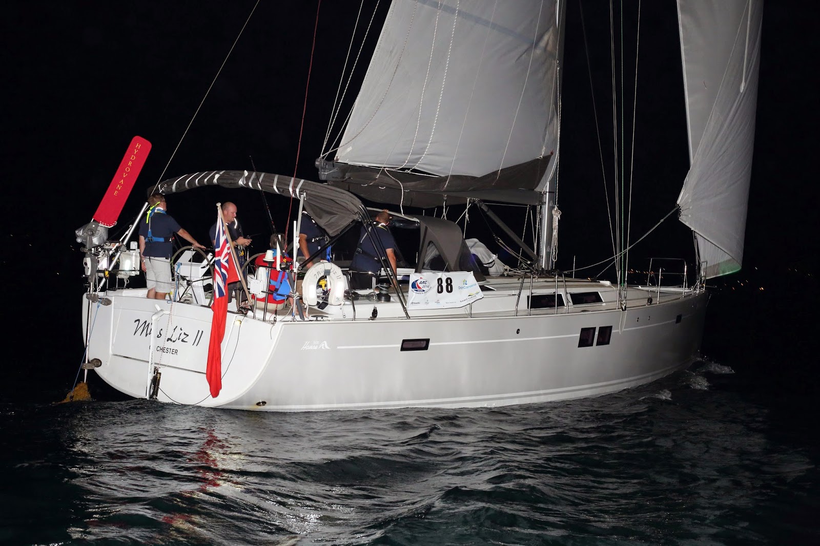 Yes, the Hydrovane worked great and I really appreciated it being solo. I had one time on the crossing with wind directly behind me (15 knots or so), the mizzen out to port, the main out to starboard and the genny out to port (wing on wing on wing) and sailed that way for about 5 days without touching anything!