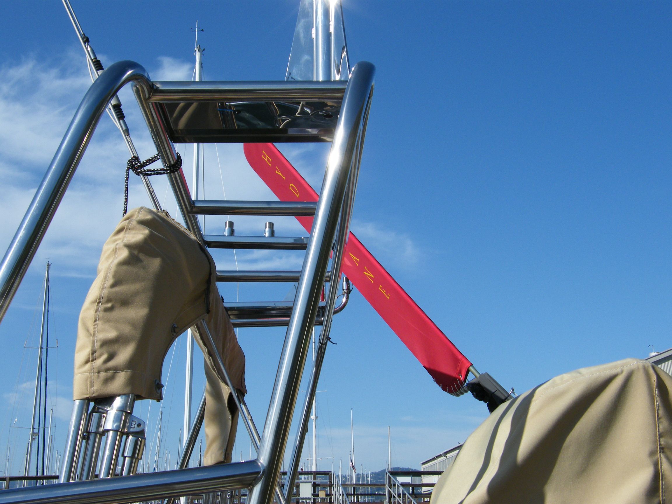 My setup is so cool… Hydrovane, davits, and 350 watts of solar panels. I didn’t have to compromise!